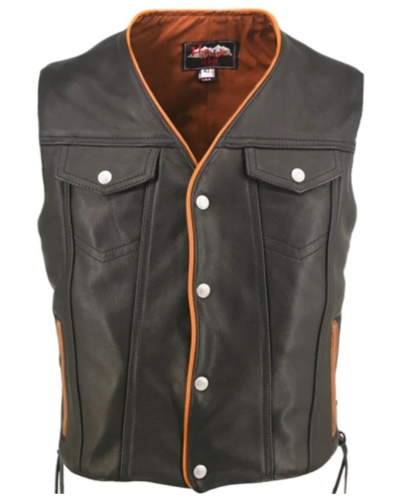 Men’s Denim Style Orange Trim Motorcycle Vest